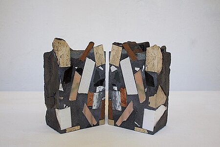 Diverse Steine, Mörtel, Pigmente, zweiteilig je 23 x 14 x 9,5 cm Auflage 10 Unikate ähnlichen Typs 500 €