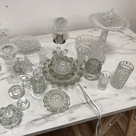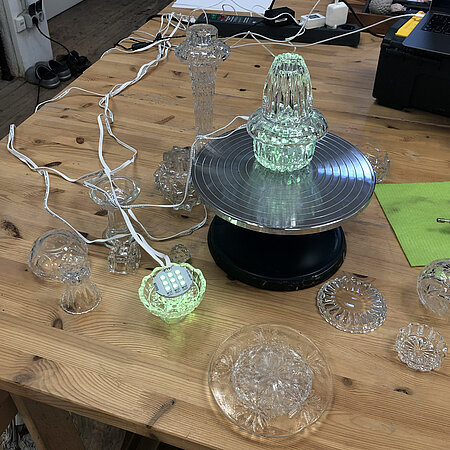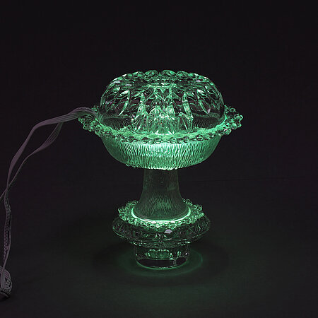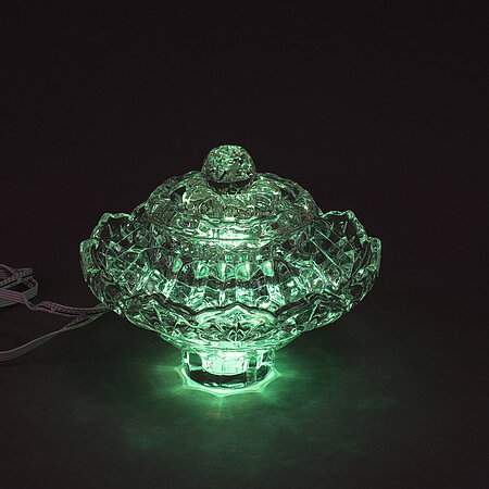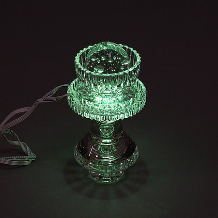 Found glass objects, LED-lights, UV-glue